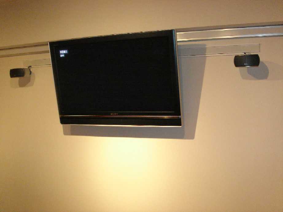 寝室に大画面高画質・高音質のシステムを実現するため40型液晶ハイビジョンテレビと